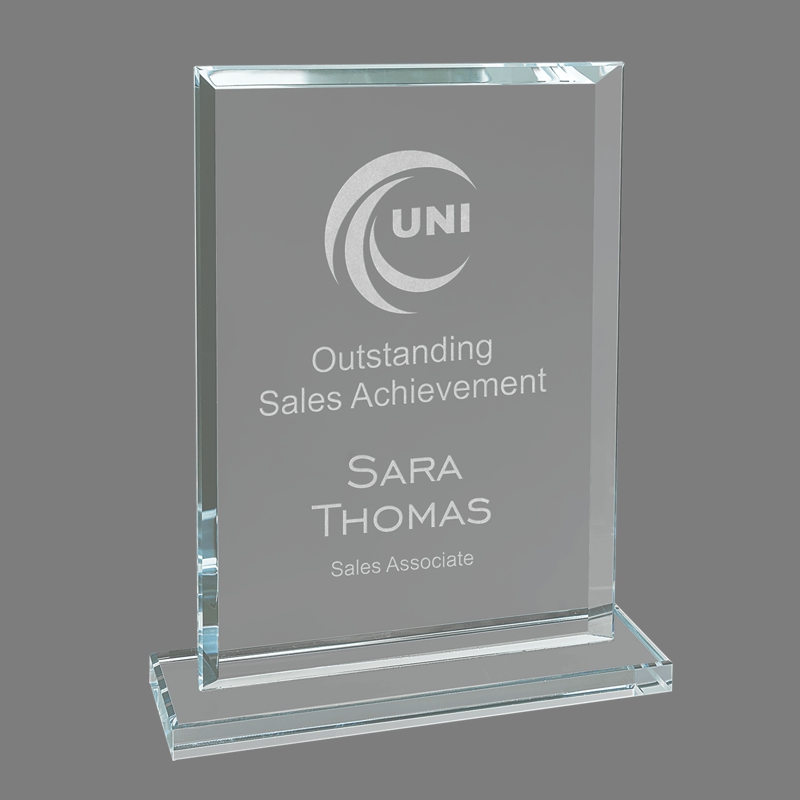 This 1 1/2″ thick Tapered Crystal trophy comes with blue globe. Each piece of crystal is made by hand, air bubbles and color variations are common.A perfect recognition award to acknowledge sales, safety, scholarship, service, charitable donations or any significant achievement.Individually gift boxed.*Etch engraving included in price. See below for details.Individual PricingK9236 – 2.75″x8″ – $112.99By the caseK9236 (10 per case) – $92.99 each*Etch engraving included at the time of purchase. 1 Logo, up to 2 lines, 20 characters per line. Logo’s must be black and white and in a usable format. Unusable logo alterations, if possible, will incur a $25 charge. If you leave awards blank to be engraved at a later date there will be a discounted $5.00 set up charge per piece for standard engraving. Items must be accompanied by a receipt. Thank you!TAX EXEMPT CUSTOMERS: If you are tax exempt please notify us and we will reimburse tax after your purchase.Proudly Engraved in the USA by an American Small Business!Are you a sports club or school?You could qualify for 5% off this order by signing up for our fundraiser. Click to view details and sign up.